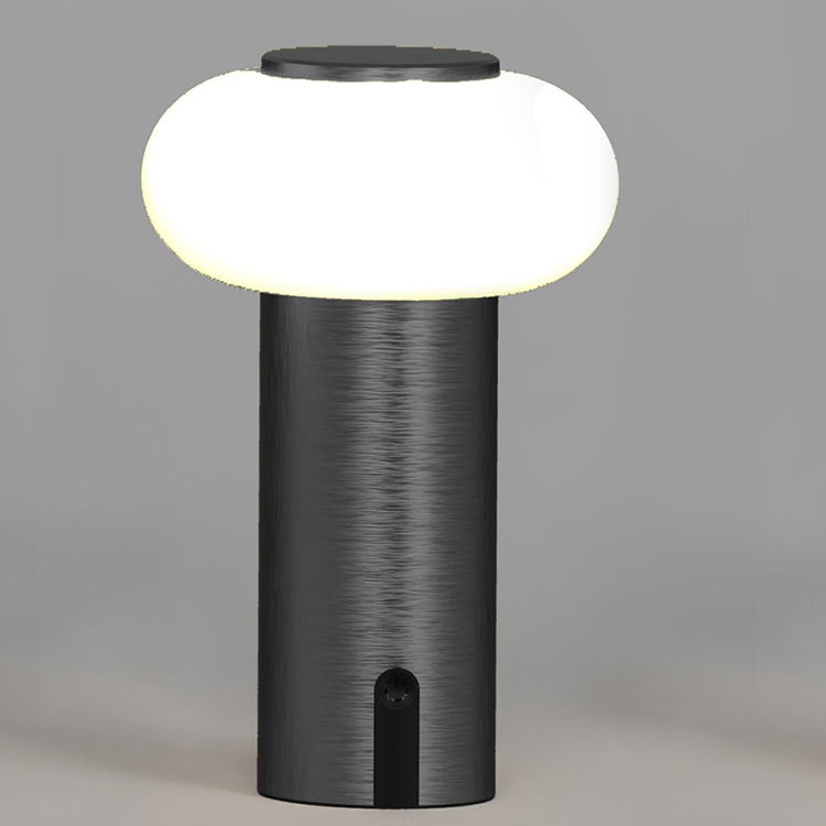 Abajur touch com pintura eletrostática prata.