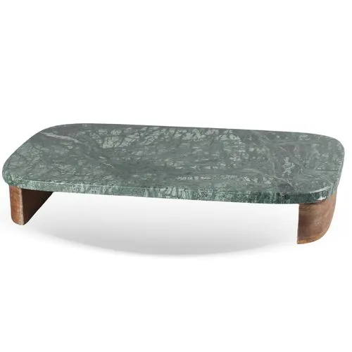 Bandeja Retangular em Madeira e Mármore Verde.