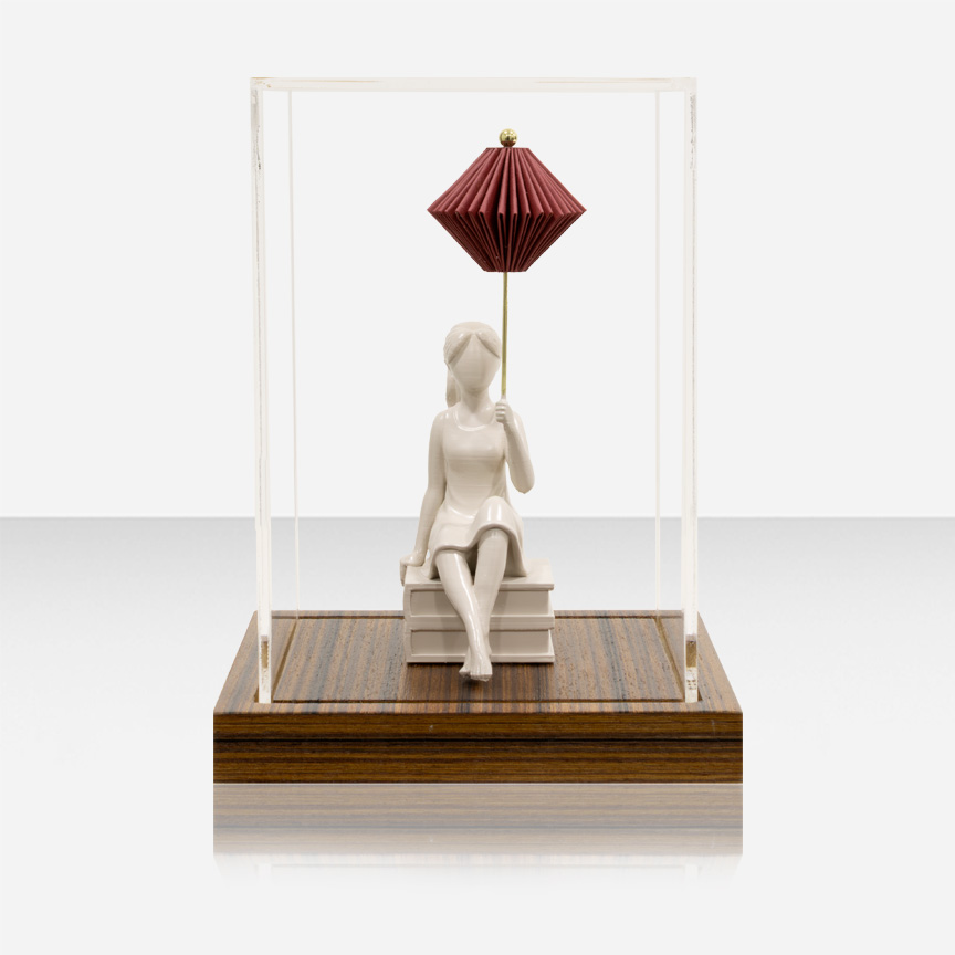 Objeto 3D com escultura em papel sobre acrílico.