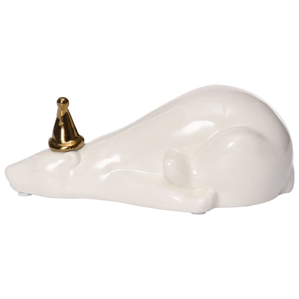 Escultura em Cerâmica Urso Deitado com Chapéu.