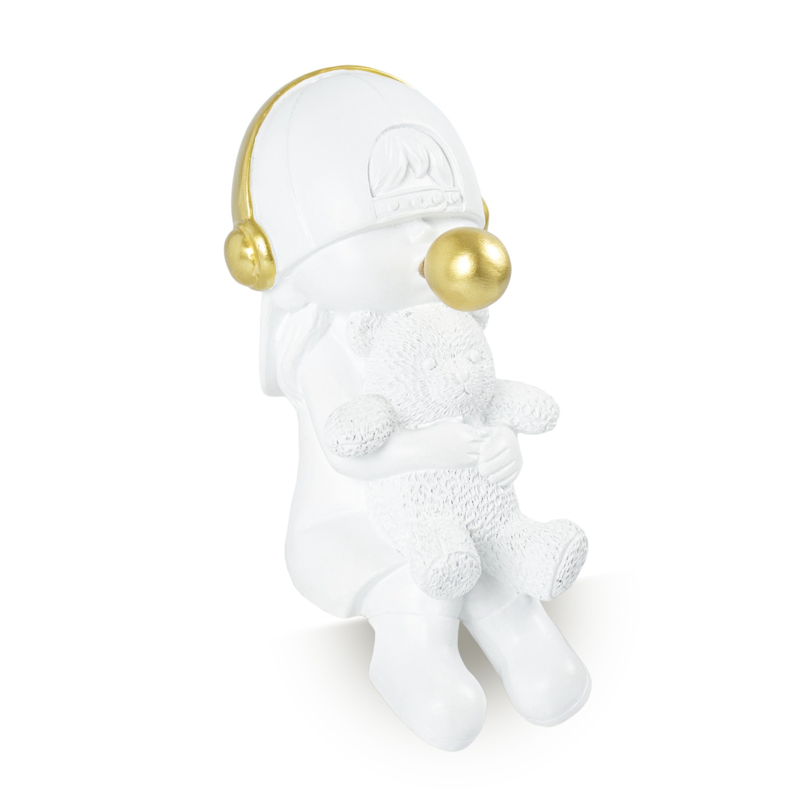 Escultura em Resina Menina Sentada com Urso Branco.