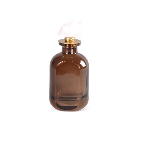Garrafa Decorativa em Vidro Âmbar com Detalhe em Pedra Branca.