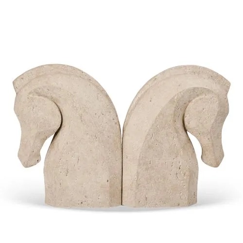 Porta Livros Cavalo em Resina estilo Travertino Bege – 2pcs