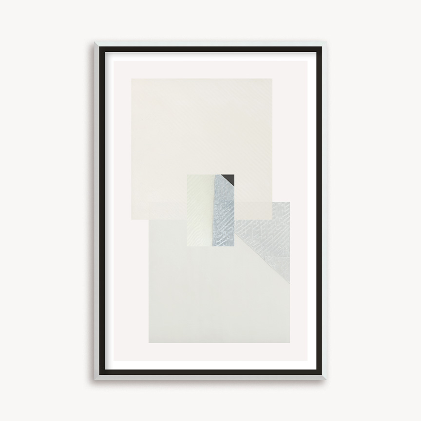 Quadro com impressão em canvas e moldura em madeira branca.