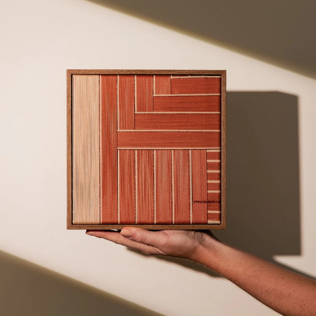 O Intervalos Coral é um quadro artesanal que transforma linhas e ângulos em poesia visual.